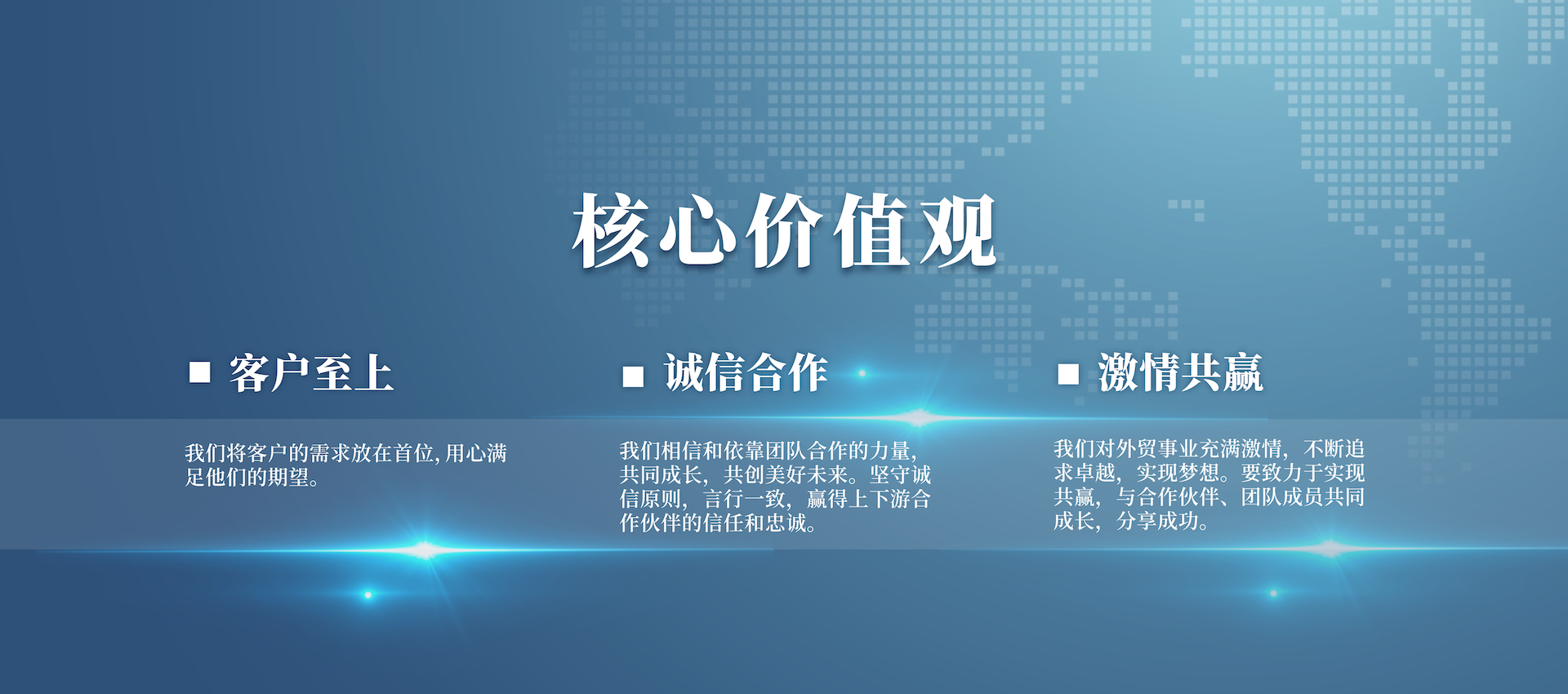 公司從成立伊始就緊緊圍繞外貿主業,充分發(fā)揮擁有國際營銷渠道及掌握國際市場信息的優(yōu)勢,著力優(yōu)化業務結構,轉變增長方式,提高經營質量,強化以客戶需求為原動力的供應鏈管理,建設出口商品生產基地。公司力爭發(fā)展成為以外貿為龍頭、實業為基礎、科技為依托,貿工技一體化發(fā)展的一流國際經貿企業。
